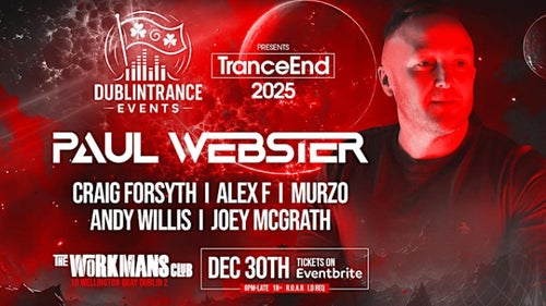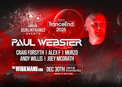 Get ready for an unforgettable night as Paul Webster headlines TraceEnd 2025, bringing his signature high-energy trance sound to Dublin’s biggest trance celebration. Experience the pulse of the scene with top-tier production, euphoric melodies, and the ultimate crowd atmosphere — this is how we close out the year in style.